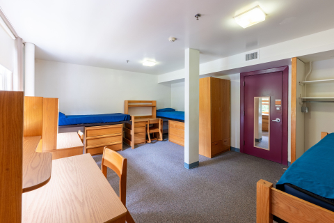 - Each room includes a bed, desk, chair and dresser for each resident.
